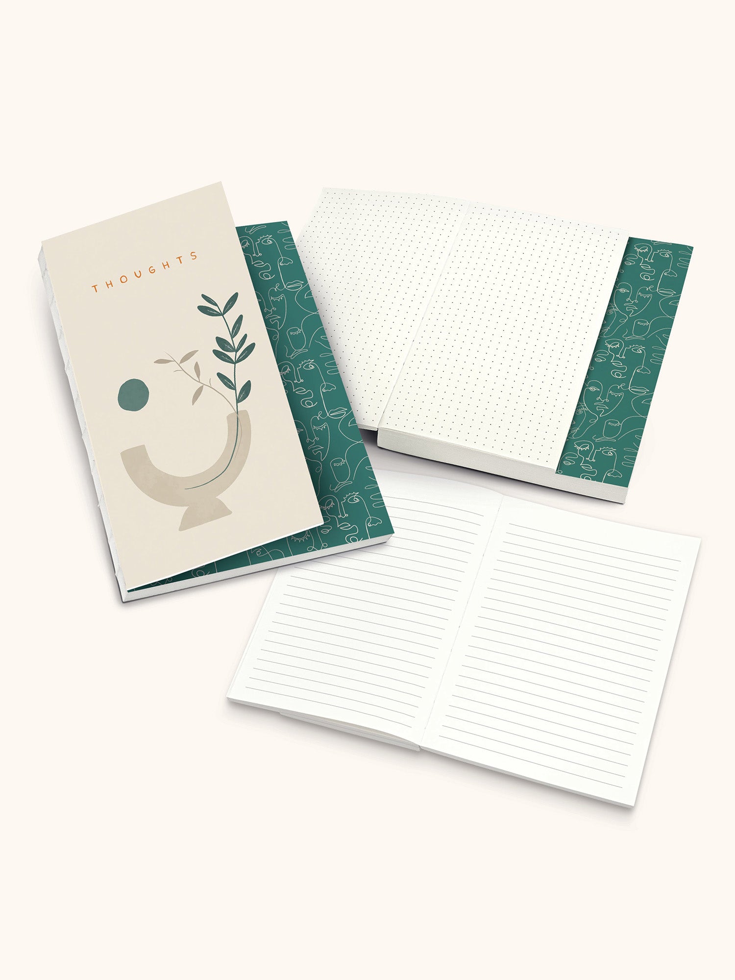 The Duplex Journal from Studio Oh! showcases originality from cover to cover. Conveniently sized to fit into a handbag or backpack, the unique bi-level format offers two sections for drawing, note-taking, list-making, or journaling. The narrow top tier has 64 dot-grid pages, and the wider bottom tier has 192 lined pages. The two softcovers are artfully designed with distinct but corresponding original artwork.