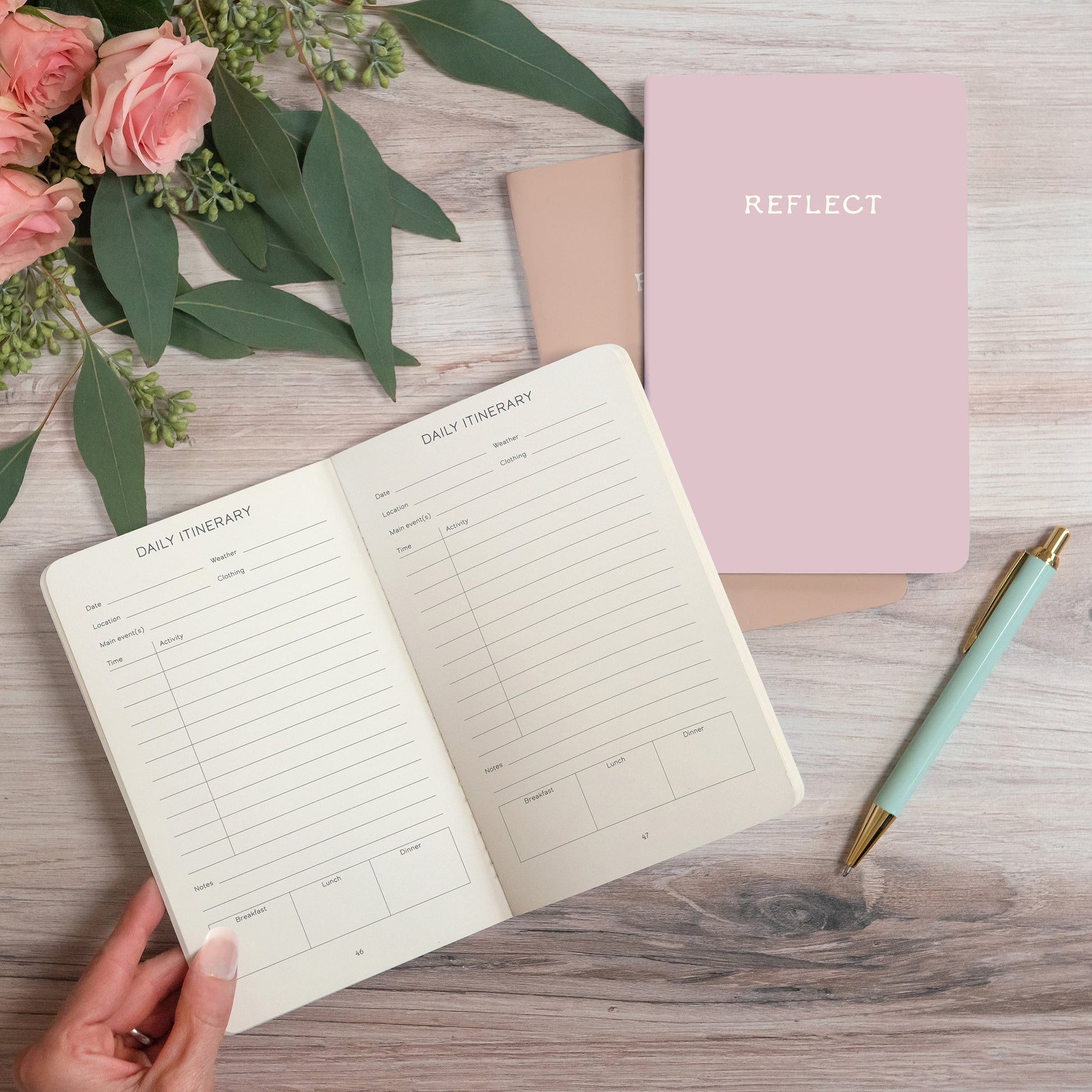 The Travel Journal Trio from Studio Oh! is designed to serve as both a planner and keepsake for travel enthusiasts. The bundle includes three journals perfectly sized to slide into a handbag or backpack for a day of exploring. “Plan” features organizational tools such as a travel budget, space for consolidating transportation and lodging details, and in-depth daily itineraries. “Reflect” includes blank lines for diary entries and unguided reflection. “Review” provides prompts for rating and recording experiences with restaurants, lodging, activities, and more—plus space to store photos and mementos. Let the adventure begin!