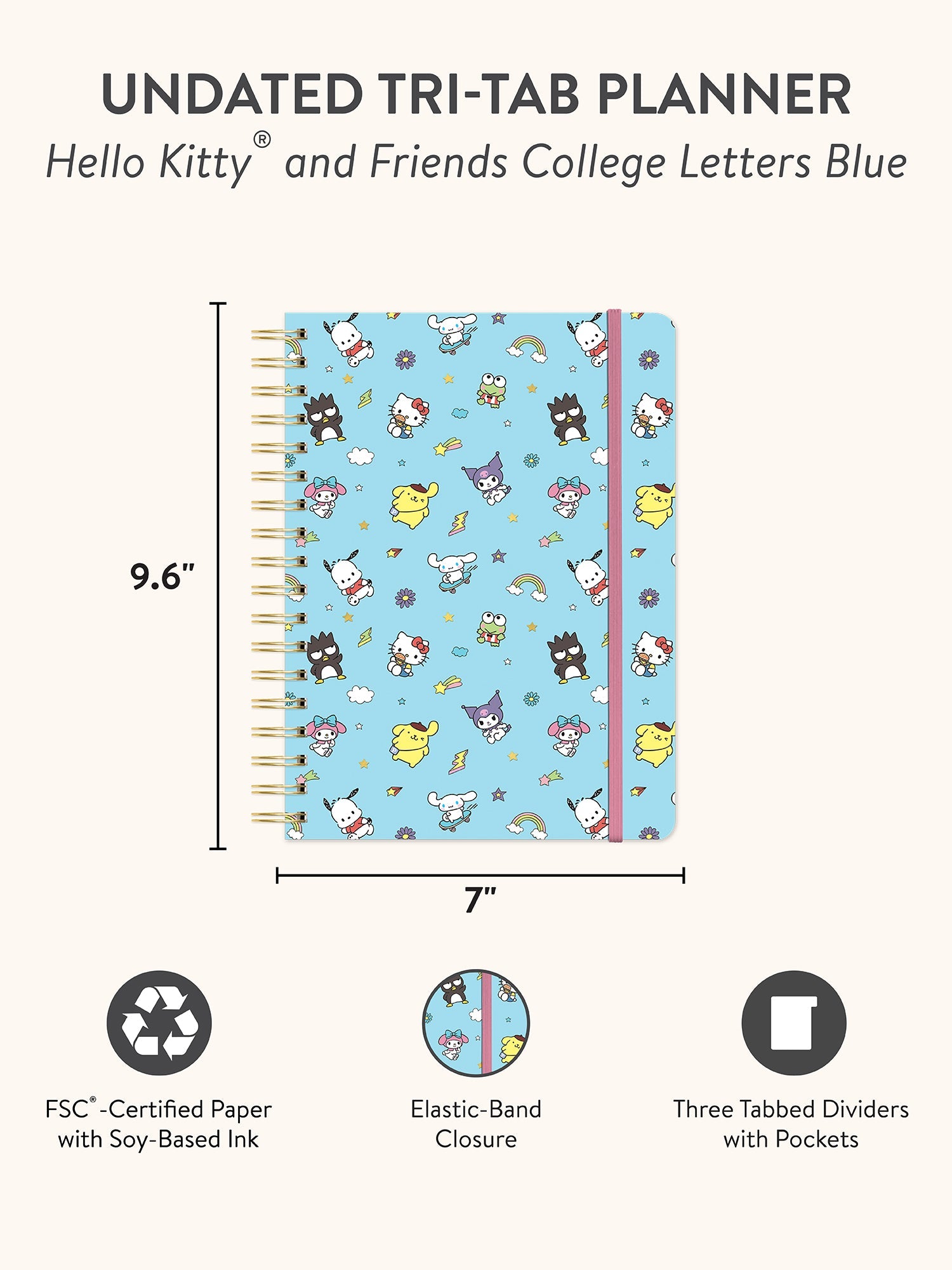 Hello Kitty and Friends College Letters Blue Undated Tri-Tab Planner