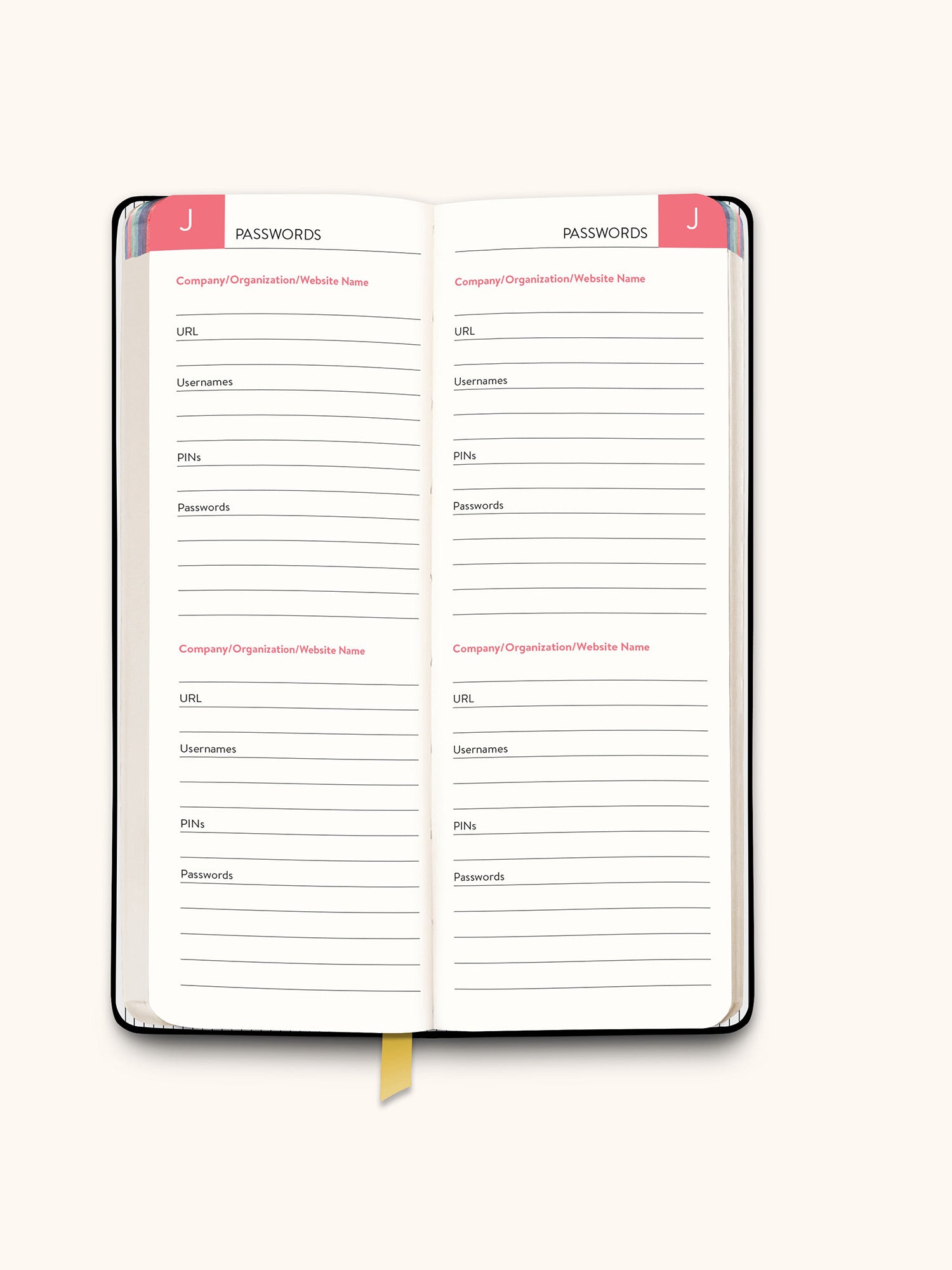 With everything from online shopping to streaming requiring a password, there's never been a greater need to keep track of passwords for easy retrieval. The portable password jotter journal from Studio Oh! is the perfect tool to keep track of your websites, usernames, PINs, and passwords in one place. The jotter's inconspicuous design discreetly conceals its purpose, and its slim size slips easily into a handbag or backpack.
