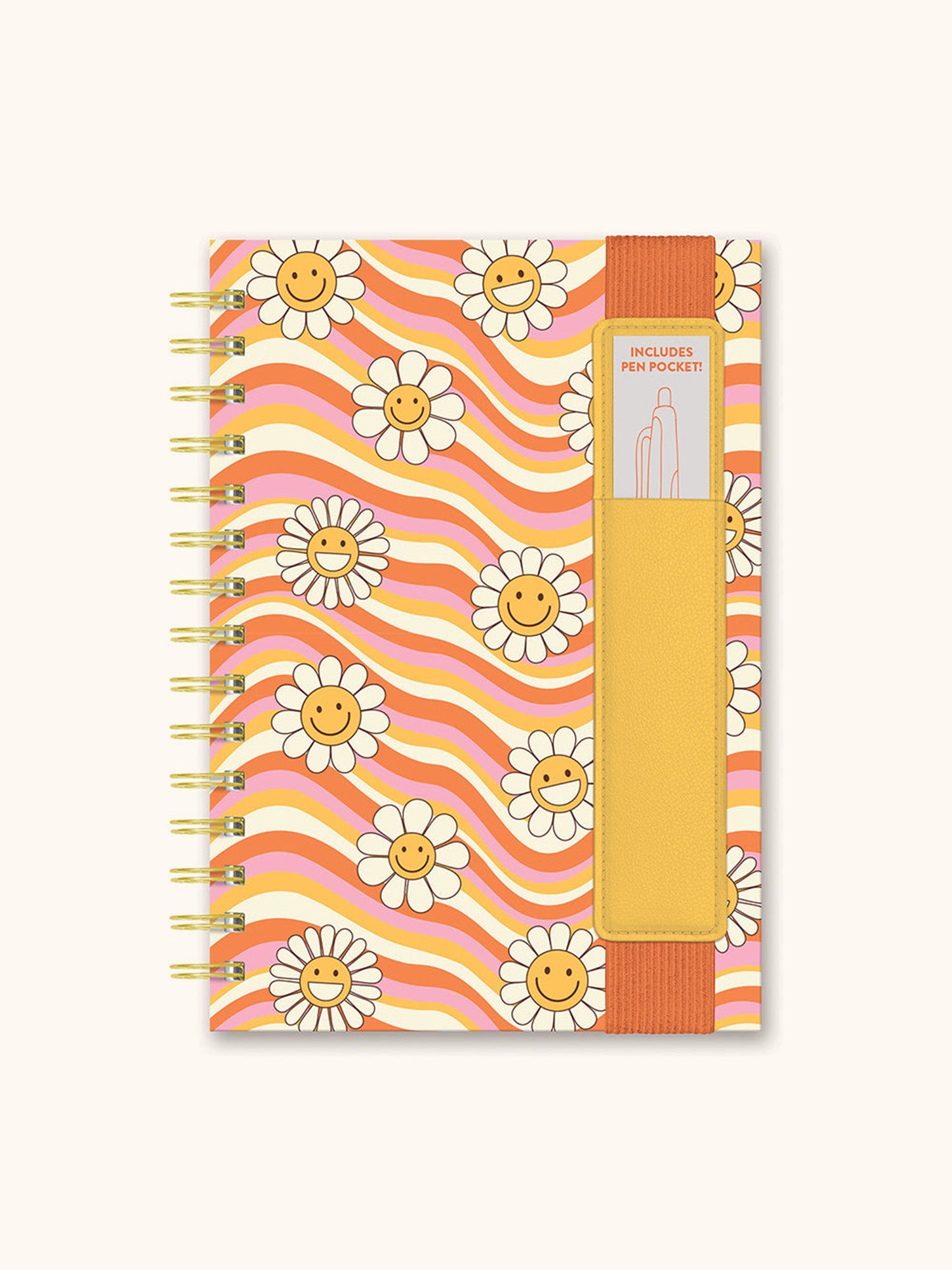 The Oliver Notebook comes with a convenient vegan leather pocket that securely holds two pens or pencils, and the wide elastic band can be used as a page marker. The hardcover format with wire-o binding provides writing support while allowing the pages to lie flat. Available in a selection of whimsical covers, the Oliver Notebook with Pen Pocket is designed to make journaling both fun and convenient for people on the go.